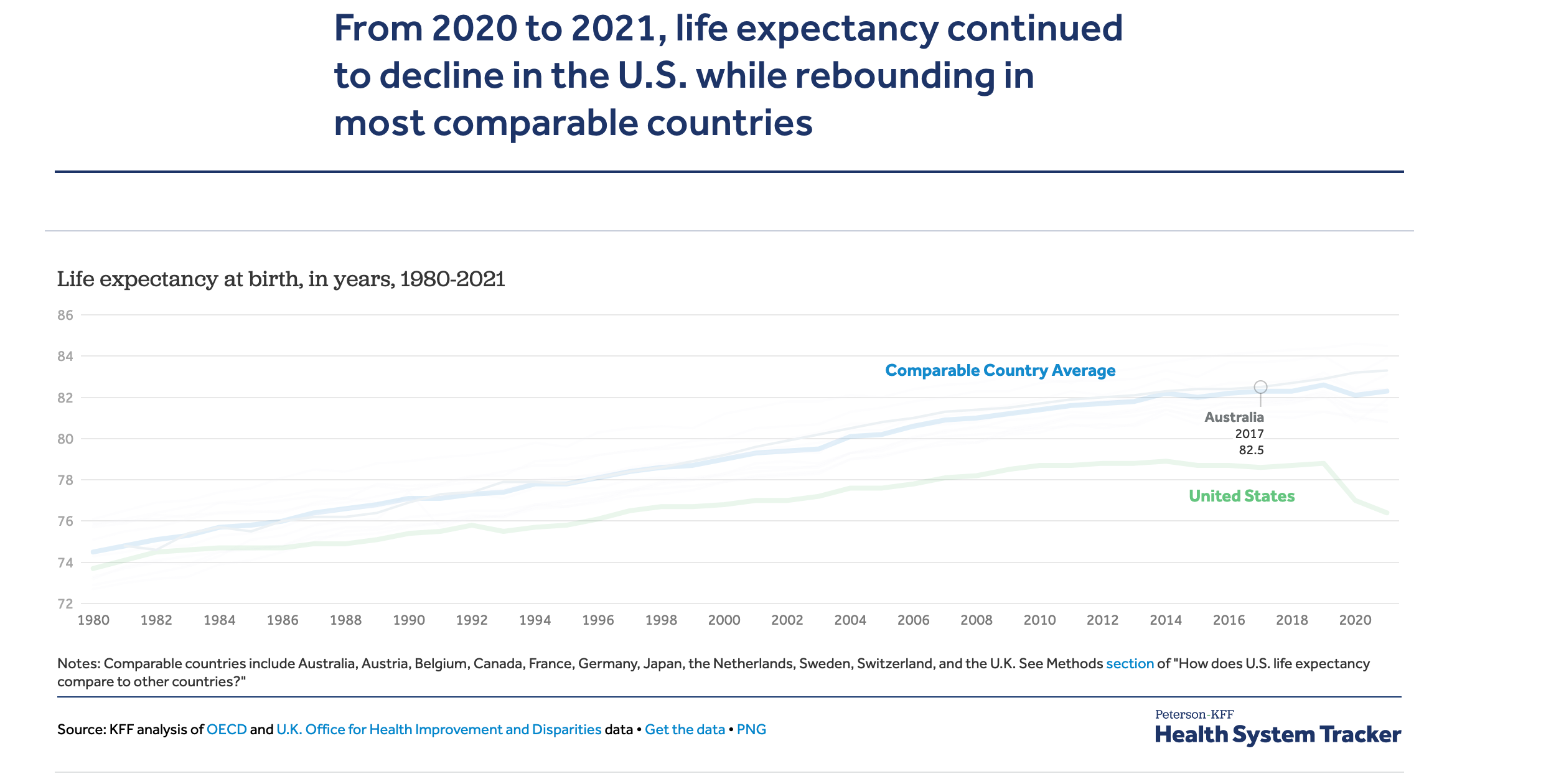 📉 The US continues to have the lowest life expectancy despite spending the most