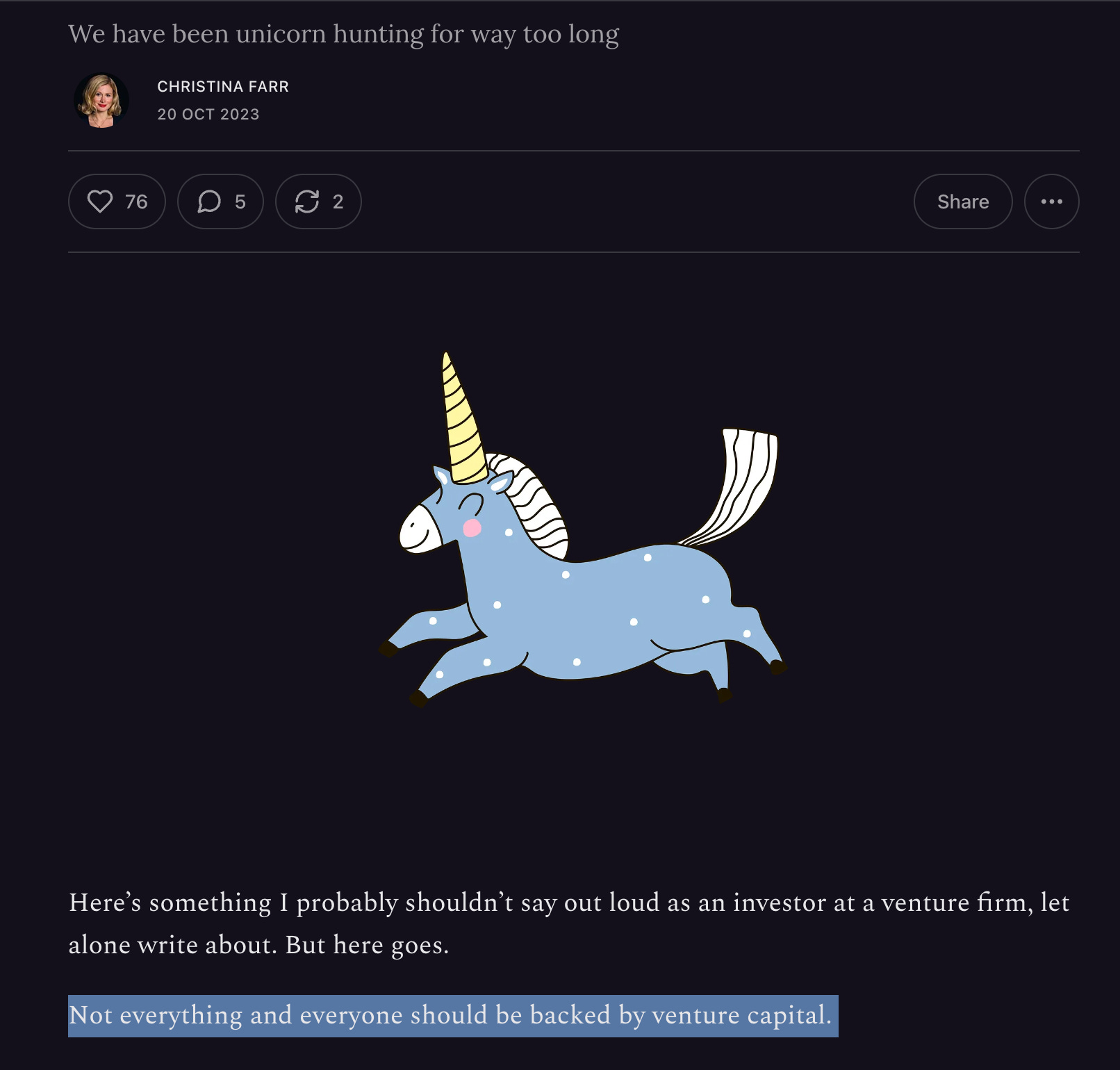 💡 The incredible Cristina Farr dropped her take on VC in health, which selfishly aligns with mine… Resetting expectations for VC investing in health tech