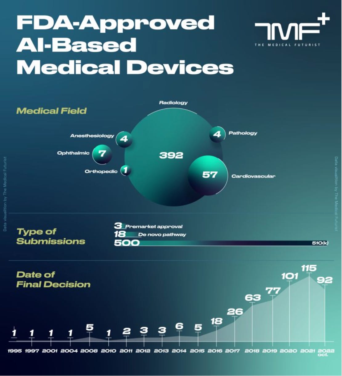 🦾 Our friends at The Medical Futurist did a fun biographic on the official list of the FDA and displays the medical fields, types of submissions, and final decision dates all in one place.