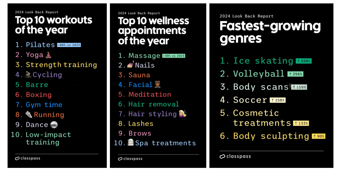 📊 ClassPass revealed its 2024 Lookback Report, finding that since 2023 fitness reservations have surged by 51%, while salon and spa reservations have risen by 38%