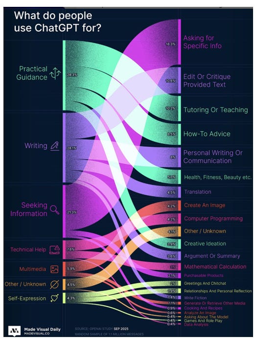 🤖 ChatGPT users unsurprinsingly make wellness a top use case, with 6% of chats focused on health as AI shifts from generic advice to personalised fitness, nutrition, & longevity plans
