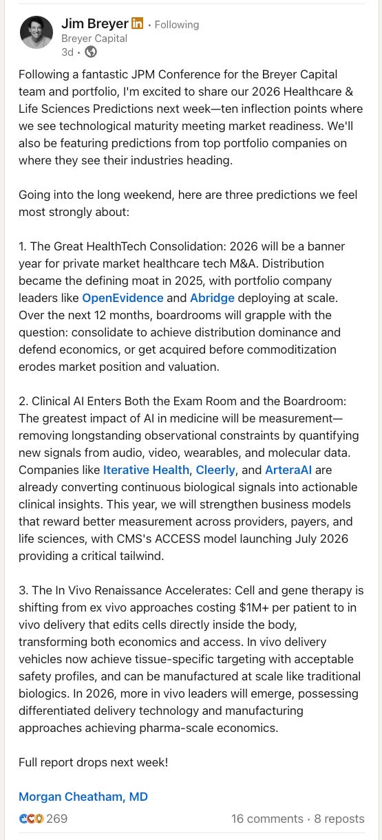 💬 Jim Breyer & Breyer Capital Kicked off the flood of 2026 healthcare predictions…