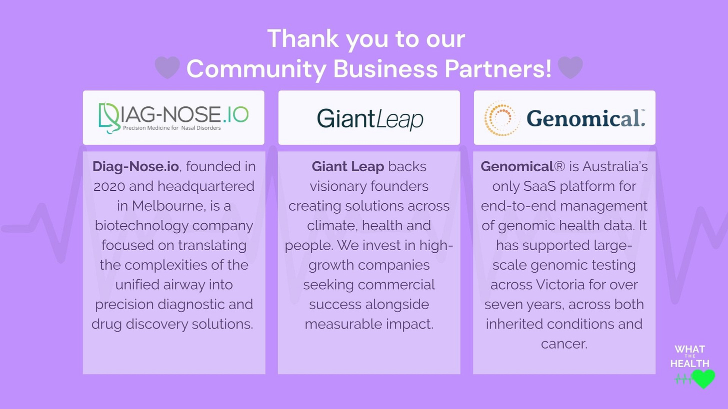 PS - Want to get in on the fun, partner with Australia’s leading healthtech gossip collumn and get in front of ~10,000 health leaders & learners?